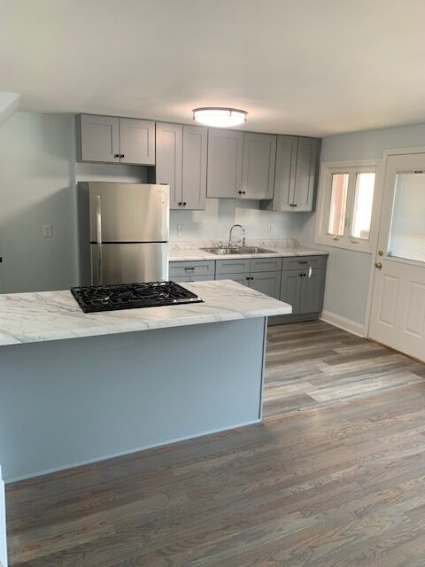 Highlights include refinished hardwood floors, fresh neutral paint, and updated lighting and fixtures throughout. The brand-new kitchen features new cabinets, modern fixtures, and new appliances, creating a clean and functional space for everyday living.